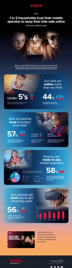 Adding some additional data here; Enea commissioned Censuswide to interview more than 4,000 parents in the US, UK, France, Germany, Italy and Spain to assess their children’s online activity and what additional steps can be taken to provide a safer online experience.